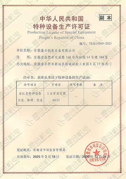 目前我公司具有建筑機(jī)電安裝工程專業(yè)承包一級(jí)資質(zhì)、總承包二級(jí)、GC2壓力管道設(shè)計(jì)、施工資質(zhì)。現(xiàn)有高級(jí)工程師5名、高級(jí)技師55名、工程師22名、助工25名、技術(shù)員22名、各類(lèi)專業(yè)技師50多名,強(qiáng)大的技術(shù)力量及精良的施工隊(duì)伍,為客戶提供全方位服務(wù)。 公司本著“一切為了用戶”的經(jīng)營(yíng)理念,“以品質(zhì)求生存、以誠(chéng)信贏市場(chǎng)、以管理促發(fā)展”為要求,努力為廣大客戶提供專業(yè),優(yōu)質(zhì)、高效的服務(wù)。